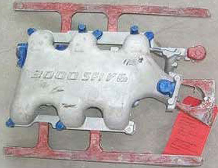 Once the coating procedure for a particular casting is finalized the method must be recorded for future reference. One method is to mark a sample casting with paint. In the attached photo, the unpainted areas have a standard coating, the blue painted areas are trimmed and coated with graphite coating, and the red painted runners and risers are coated with HALLCoat600 isolative coating or equivalent.