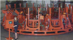 The tilt pour process is one variation of the permanent mold process. Simply put, the tiltpour casting process is the pouring of molten aluminum into a mold by tilting the mold to fill it in a controlled fashion. In traditional tiltpouring the mold parting line is perpendicular to the floor during the solidification phase, while in reverse tilting the parting line is parallel to the floor. Turning the parting line allows the casting to be center fed similar to the way a casting produced in the low pressure process is fed. This feature makes reverse tilting a cost effective alternative to capital-intensive low-pressure casting. In many cases the casting can be direct poured, eliminating costly runner bars and increasing yield.