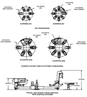 HOME → PRODUCTS → Rotary style machines → Tilt Pour Rotary Table Tilt Pour Rotary TableThe As an example, based on our 8-station At 83% of theoretical, it would be 100 machine cycles per hour. At 100 hours per week, this calculates out to 10,000 machine cycles per week. If there are two cavities, it will produce 20,000 parts week . This will give a total production of nearly one million parts per year! Click to enlarge. The drawing (above) requires Adobe Acrobat Reader to view.